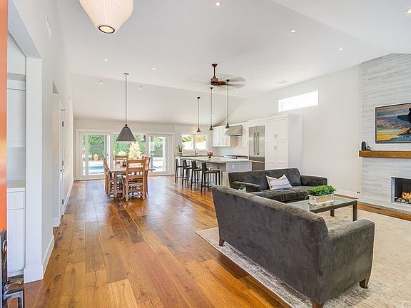 This dazzling single level, modern home has been tastefully remodeled and is move-in ready! Tucked away in a desirable neighborhood of Huntington Beach, this home sits just a mile from the ocean and affords some of the greatest luxuries of beach-close living. The front of the home is decorated with drought-friendly plants, and an orange contemporary door warmly welcomes you home. Pristine Provenza flooring adorns the home, along with custom baseboards, crystal door handles, and brushed nickel fixtures. This open floor plan with large windows and volume ceilings allows for ample natural light to fill the space. Relax in your living room next to the fireplace with a custom surround. The newly remodeled chef's kitchen offers quartz counters, a large center island with room for seating, subway tile backsplash, soft-close cabinets, and Thermador stainless steel appliances. The two fashionable guest bedrooms off the hallway are sizable and share a bathroom complete with a gorgeous shower with stone surround. The master bedroom offers a large master bathroom complete with dual sinks, a walk-in shower, and a door leading to your backyard. The backyard is perfect for enjoying the company of friends and family, as you can enjoy the pool on a sunny day or relax in the jacuzzi in the evening, and you have the luxury of rinsing off in your convenient outdoor shower! Located next to great schools and sitting close to the beach, this custom, remodeled home is a must-see!