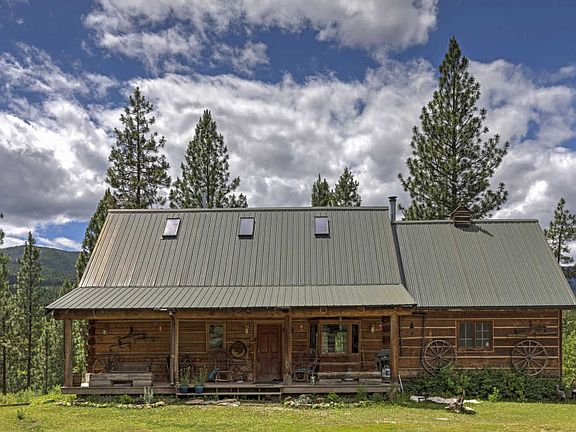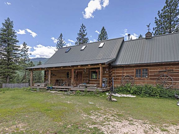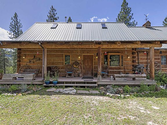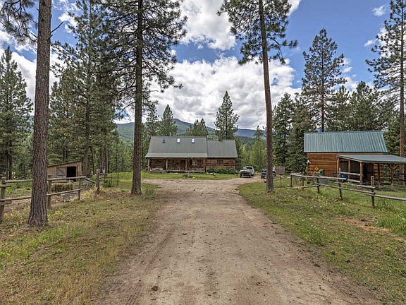 Wonderful home with additional guest house bordering Ninemile Creek. The flat log home has a great layout and full unfinished basement with a 2 car garage to keep your vehicles frost free in the wintertime! Wake up to the sounds and scents of pine filled woods and the flowing creek below. Have coffee on the west facing deck or under the covered front porch. The home features a master bedroom on the main with french doors opening to the deck. The upstairs has a bedroom, bath and extra area for an office, crafts or simple lounging space. The property also includes a 1 bed 1 bath 580sf cabin currently used as a rental. Fabulous eagles perch outcropping provides an excellent place to gather round the fire pit and view the creek valley below. The well built main home has a metal roof, recently