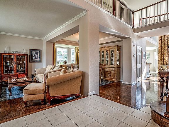 Incredible Saddle Rock Golf Club home on a beautifully landscaped, private lot! Quality finishes and touches throughout! Vaulted formal living and dining rooms with gorgeous wood flooring and crown molding everywhere! Sunny eat-in kitchen with granite countertops, plentiful cabinets, large pantry, island for additional food prep or seating, and all stainless appliances included! The family room is adjacent to the kitchen and is sure to become a favorite gathering place with its charming gas fireplace and entertainment built-ins! Lovely main floor master suite featuring vaulted ceilings, a large walk-in closet, and a gorgeous 5-piece bath! Convenient powder bath and the laundry room are also found on the main level! Upstairs, there are 3 sizeable secondary bedrooms and a loft area - great space for the kiddos! Bedroom 2 has use of the 3/4 bath, and bedrooms 3 and 4 share a full hall bath! The finished basement is nicely done! This finished space is perfect for a media room, game area, or rec room! There is also a dedicated study in the basement, a 5th bedroom with a huge walk-in closet, and a full bath! Ideal for guests or teens! From the main level, step out to the huge patio and enjoy year round get-togethers with family and friends! Beautiful and mature landscaping provides lots of privacy!! Extra special features of this home include new furnace, A/C, and exterior paint in 2020, brand new front and patio doors, plantation shutters in the basement, crawlspace/storage area, and water filtration system! Great location within minutes of schools, Southlands shopping, dining and entertainment, E-470, DIA, Buckley AFB, and more! Awesome Saddle Rock amenities - low HOA fee of $240/year! Quick walk to neighborhood park, swimming pool and tennis courts! Don't miss this gorgeous home in desirable Saddle Rock Golf Club!