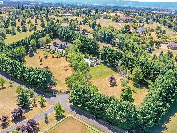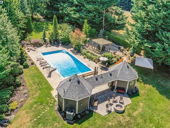 A perfect combination of sophistication and livability, discover an exceptional tree lined, fully fenced 5-acre estate in Ridgefield, WA. Tucked in Rolling Hills Estates, this meticulously designed home features four spacious bedrooms, two flex rooms, and an upstairs bonus room, offering endless possibilities for customization and entertainment. The kitchen is a culinary masterpiece with top-of-the-line appliances, an oversized island, and a hidden pantry. The private patio seamlessly extends your dining options, allowing for a peaceful meal with the tranquil sound of the nearby fountain. The main floor is home to an oversized office space adjacent to the large living room that exudes comfort and elegance. This magical oasis features a saltwater pool, lush landscaping, and two pool houses with convenient amenities including a kitchenette, refrigerator, W/D and private bath with a walk-in shower. Experience the serenity and magic of this exceptional estate by scheduling your private tour today.