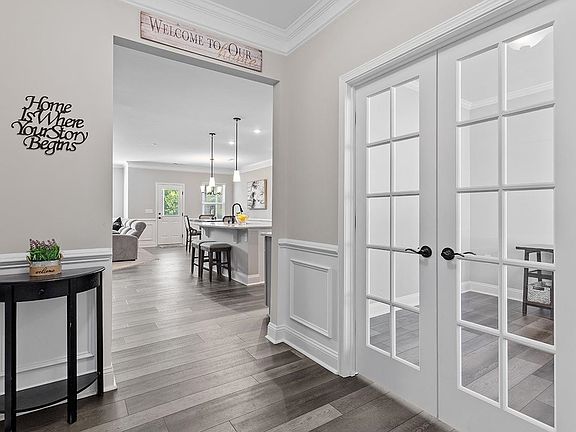 Contracts signed. Waiting for DD $. You will fall in love with this less than 1 YR old North/NW facing new home located in Hidden Valley! Gorgeous curb appeal. You will be welcomed by beautiful office space W/french doors/modern-durable LVP floors. Open concept kitchen features Quartz counters/Island. Light Bright feel W/pendant lights/soft close drawers. Big walk in pantry and gas stove. Spacious Family Room W/extra bump out upgrade. 4 large bedrooms upstairs. Primary BR boasts trey ceiling/large WIC. EN Suite W/granite counters/double vanity/garden tub. Oversized loft for TV/play time. gas line stub out on patio, baseboard 5-1/4", ceiling fans, utility sink in garage, tray ceiling on main bedroom, double vanity on common use bathroom upstairs, built in pest control, flat lot. Entertain your guests easily on your screened porch enjoying summer nights overlooking a unique large, flat wooded back yard. Have guests staying over? 1st Fl. Big guest room, adjacent to a full bath! Utility sink in 2 car garage. Drop Zone off garage. Gas line upgrade. Built in speakers. Community has a wonderful pool/fitness/playground.
