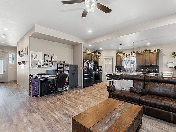 BACK ON MARKET-Buyers home contract fell out. This is the beautiful home w/the high end finishes throughout that you are looking for! This still new home has slab granite counters have rough cut edge in kitchen and bathrooms. You will love the split bedroom plan with an open layout w/lots of light and a gas fireplace in the living room. Primary bedroom is spacious, has a large en-suite bathroom w/expansive closet and wraps around to laundry room. Secondary master bedroom has large walk in closet and en-suite bath is on the other side of the home. Large 3 car garage provides lots of room plus a shed included for storage. Enjoy the views under the covered back patio of the Bookcliff's. Yard is fully fenced, timed sprinklers and you have extra large RV parking. Schedule your showing today for this awesome home!