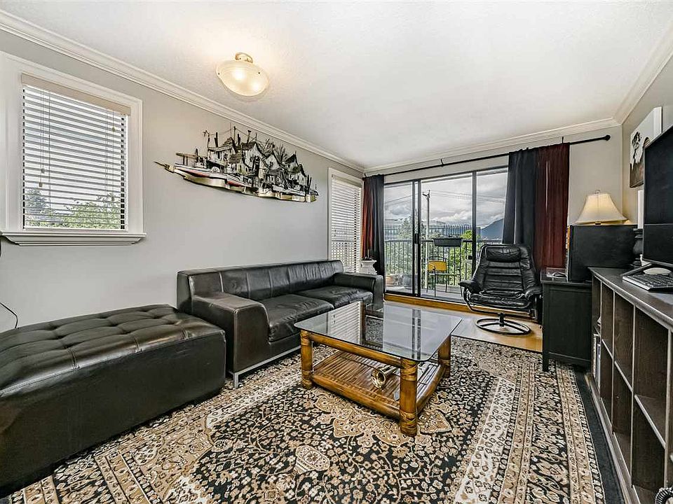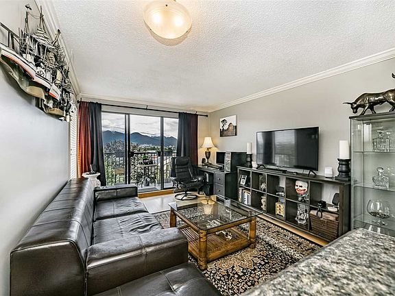 Welcome to Wood Dale - Attention all home buyers, this immaculately maintained 1 bed/1 bath features a mountain view balcony with a HUGE (400 SQF) balcony & BBQs are allowed. This home has an unexpectedly generous & efficient floor plan with no wasted space plus a large, north-facing patio where you can relax or entertain and wow your guests w/ amazing views! Parking and bike storage, heat and hot water included in strata fee. Unit comes complete with 1 storage unit. No rentals. Building features shared laundry. The Wood Dale is situated near multiple shopping, dining and lifestyle amenities on Broadway Ave & Fraser Street. Walk to Skytrain, Emily Carr University, The Centre for Digital Media, Vancouver Community College, Sahalli Park Community Garden and much more. Showings by appt.