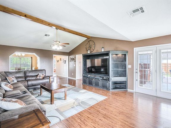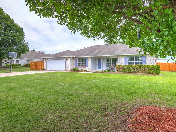 Updated w/great floor plan in peaceful neighborhood! Spacious kitchen w/tons of cabinets, SS appliances, tile backsplash, bar & b'fast area. Formal dining opens to sizable living room w/vaulted ceiling & FP. Large, private master w/high ceiling & fresh paint. Gorgeous wood floors in public area! Huge backyard w/extended, partially covered stamped concrete patio-perfect for entertaining; storage shed. New exterior paint! Just moments to new Bixby West Elementary(2020). New fence 2019 A/C 2017 Furnace 2017!
