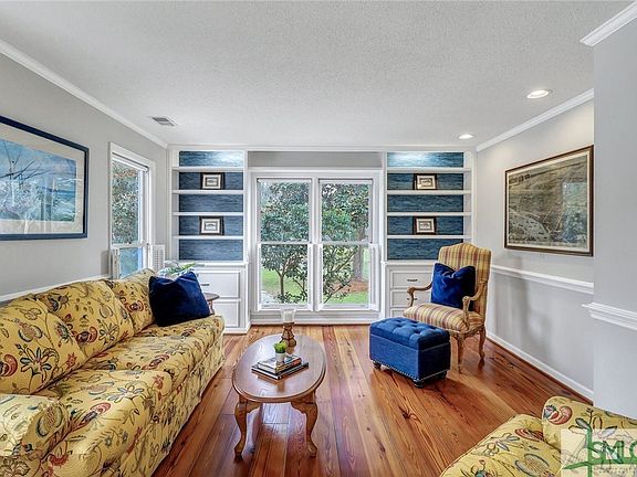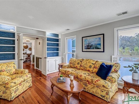 Country living with a Deep Water Dock within minutes of city nightlife attractions. Relax with your peaceful 5-acre paradise just minutes from downtown Savannah, GA Ports, JCB, Hyundai, Gulfstream, Hunter AAF and not far from Ft. Stewart. This farmhouse style home features 4 generously sized bedrooms with 4 1/2 baths, an upgraded kitchen with stainless steel appliances and granite countertops. The spacious primary bedroom and en suite are on the first floor. Each of the 2nd floor bedrooms opens to a full-length screened porch overlooking the beautiful, meticulously maintained grounds. Oversized 3-car garage has a great workshop area and a finished, air conditioned bonus room above. Pecan and citrus trees are plentiful throughout the 5 acres. Enjoy fishing, swimming, and boating from the shared private 1-acre island with dock and boat launch on the Grove River. No need to choose between privacy and accessibility to shopping and entertainment -- it's all available right here.