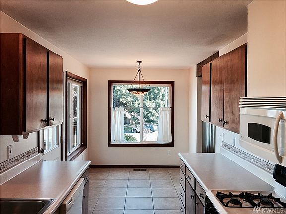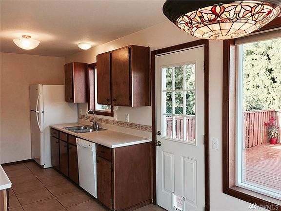 Charming Rambler in quiet Ferndale neighborhood with a Mt. Baker view! 3 bedrooms, 1 bathroom, and a 1 car garage. Includes refrigerator, range, dishwasher and microwave. Features wood laminate flooring, large deck, fully fenced backyard, greenhouse, and raised garden beds. You will enjoy your private fully fenced back yard. Close to schools.