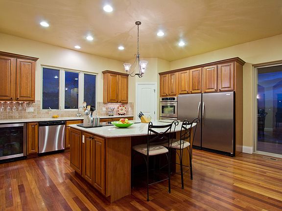 Beautifully designed, custom home on 3.2 peaceful acres, offering magnificent views & backing open space. Spacious home features a bright, open floor plan with an abundance of natural light, gleaming wood floors and finished, walkout basement. Gourmet kitchen w/SS appliances, 2 Kiva-style fireplaces, huge walk-in closet in master suite & luxurious, spa-like master bath. 5 patios and professional landscaping offer plenty of outdoor living space for enjoying the quiet, country setting & Mtn View