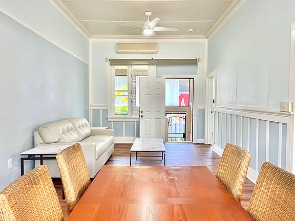 Discover a rare find in Manoa Valley with this spacious one-bedroom unit, ideally situated close to the University of Hawaii and Punahou School. This huge unit offers a separate entry, a full-size kitchen, a dining area, a living room, a large bedroom, and a den. Enjoy full usage of the garage, which includes a brand new washer and dryer, and plenty of storage space, as well as the driveway. The yard is maintained by the owner, while the renter is responsible for tree upkeep. With solar panels in place, electricity costs are kept low, though the renter pays for water. The unit also features a brand new water heater and updated electrical wiring. Located in Lower Manoa, the unit remains cool and comfortable. It comes furnished with a new sofa and queen-size bed and features AC units in both the living room and bedroom. The space is bright and airy, with ample natural light. Renters are responsible for their own internet. Please note, no pets are allowed. This well-maintained and generously sized unit is a rare find. Don't miss out! Email ONLY with the application form. owner pays yard service, renter pays electricity, water, and internet. one year lease or above. No smoking, no pets.