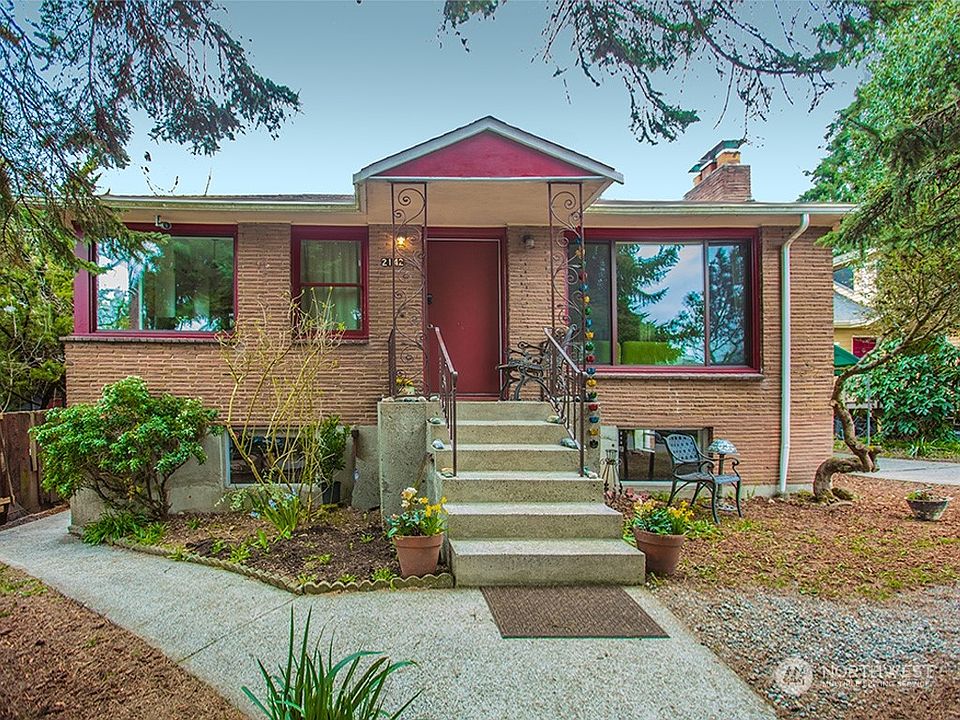 Close to Green Lake with easy access to I-5, Hwy 99 and light rail at the same time in a quiet pocket neighborhood. Location is convenient to Blanchet, Cascadia Elementary, North Seattle College, UW and NW Medical Center.  Step back to 1949 in this solid Roman brick bungalow with spacious rooms perfect for comfortable living. Main floor features living room-dining room, two bdrms, full bath, kitchen, hardwoods, fireplace & abundant natural light. Lower level has a   large open rec room with office area, fireplace plus two bdrms, 3/4 bath and laundry room. Exterior access on this level for flexible living uses. Great Storage. Large backyard, 1 car garage + long driveway for RV. Bring your creativity to this great house.