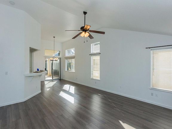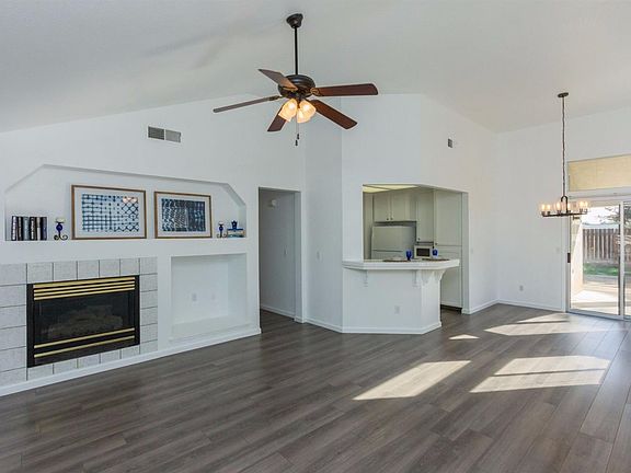 This is a find and it will go quickly! Home has been renovated with new paint including walls, closets, ceilings and interior doors, new gray wash laminate flooring and updated, painted cabinets throughout the house. Front door has been painted and new nickel door handle set installed. Awesome floor plan with crisp, light and bright interior! You will enjoy the natural light which floods the living area. Architectural features such as wall cutout for tv, decorative wall niches and fabulous new chandelier in the dining room will impress you. The front yard has been newly landscaped with sod and shrubs.