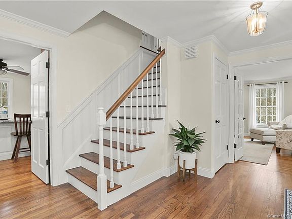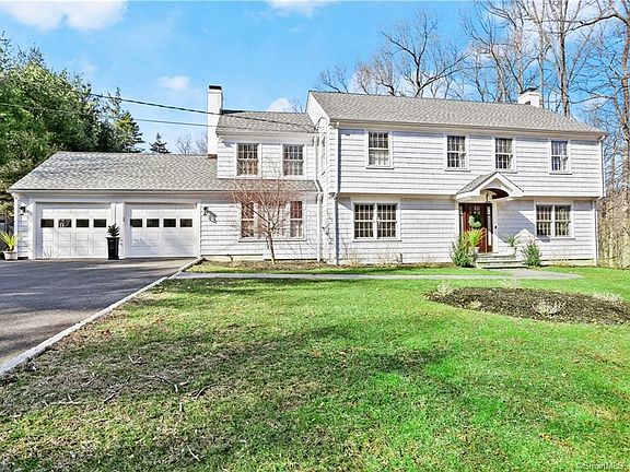 Beautiful, private Greenfield Hill 5 bedroom, 2.5 bath Colonial with gunite pool will have you dreaming of summer. This turnkey home has been meticulously maintained and updated, and offers great space for indoor and outdoor living on nearly 3.5 acres. Enter through the front door to a light filled foyer which leads to spacious front-to-back living room with wood-burning fireplace, and dining room with custom molding and hardwood floors throughout. Bright chefs kitchen with wood cabinetry, large island with wine refrigerator, prep sink, drawer dishwasher, Sub Zero refrigerator, gas cooktop, new dishwasher, wall oven and microwave (both are convection as well), granite counters, and desk area. From kitchen there is access to composite deck and amazing enclosed 3-season porch. Updated half bath and family room with gas fireplace and built-ins complete the first floor. Upstairs are 5 bedrooms, 2 full baths and a laundry room. Spacious primary bedroom with vaulted ceiling, large walk-in closet, and en-suite bathroom redone in 2018. Laundry room with new W/D 2018. 4 more bedrooms, and main hall full bathroom newly renovated in 2018 as well. Walk-up attic offers tons of potential and storage. Full walk-out basement with french doors to exterior, fireplace, partially finished and partially heated (zoned), and workshop/storage space. **Highest and best deadline monday 3/28 by 5pm***