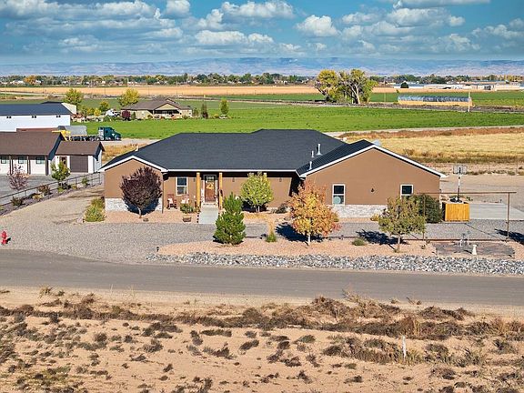 Seller is willing to contribute to the 2/1 buy down with acceptable offer! Check out this beautifully built home situated on 1.86 irrigated acres with amazing views of the Colorado National Monument, Bookcliffs, and the Grand Mesa! The open concept split floor plan welcomes you with its vaulted ceilings. The gourmet kitchen features granite counter tops, stainless appliances, soft-close cabinetry, gas stove top and a large pantry, The spacious primary suite has a walk in shower, deep garden tub, and separate sinks. Enjoy the views from the living room while looking out the over-sized window. The over sized garage has a gas heater, utility sink, and a hot/cold water hookup. Completely landscaped with timed drips and sprinklers. Extra zones were added for a landscaping expansion.