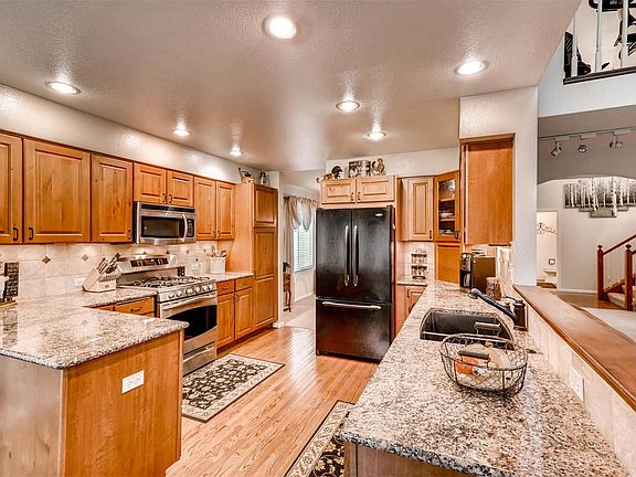 Move in and start enjoying all the Green Mountain area has to offer in this beautiful updated spacious home. Close to parks, hiking and biking trails. 20 minutes to downtown. Highly rated schools. Open & bright living space welcomes you upon entering the front door. Relax in the reading nook. Vaulted ceilings in the master bedroom & bath with soak tub and walk-in closets. Gourmet kitchen with gas stove, updated cabinets, under cabinet lighting, granite counter tops, hardwood floors. Kitchen area opens up to a wonderful outside living space, with a gas grill, pergola, professionally landscaped yard with abundant room for entertaining. The finished basement includes pool table, wet bar, mini fridge, microwave oven, 70" rear projection TV, and surround sound. New concrete driveway, front steps, and exterior paint. Patio gas grill and decorative swing in backyard are included. New HVAC in 2014, additional outdoor outlets in upper garden in backyard.