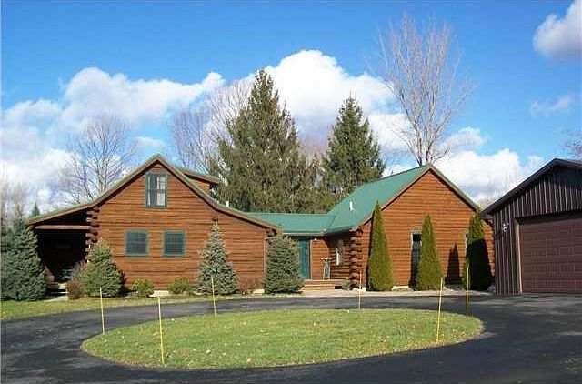Custom log home on 10 acres with workshop & 3+ garage! Come see this beautiful log home that features 1st floor master suite with floor to ceiling (gas) fireplace, vaulted ceilings, private bath; also open kitchen with large center island, spacious living room with vaulted ceilings, gas fireplace, large workshop w/circular driveway (includes 5 acre adjoining parcel). Most furniture negotiable, and includes projection TV in the living room with hidden large pulldown screen.