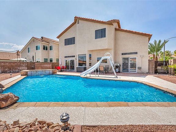 With three full baths total, the home is perfect for family living. The formal living room offers an inviting space with cathedral ceilings, perfect for entertaining guests, while the beautiful backyard boasts a sparkling pool, ideal for relaxing and enjoying the sunny Nevada weather. Additionally, you'll appreciate the convenience of a three-car garage, providing ample storage and parking space.