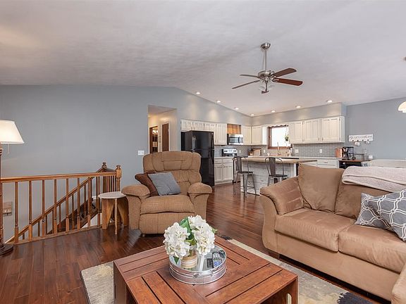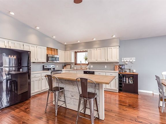 Welcome to this marvelous 4 bedroom, 3 bathroom, brick house with an attached 2 car garage. Entertain your friends and family in the urban farmhouse styled main level living space featuring open concept floor plan, new hardwood flooring, vaulted ceilings and more! Kitchen has been updated with copper sink, island with breakfast bar, backslash, countertops, appliances, USB ports and dimmer lighting. Indulge in the sunshine and outdoors with the the 2 tier deck- fabulous for grilling, lounging by the above ground pool and fenced in yard! Master bedroom has 2 double closets, and 3/4 bath, 2nd room is XL with a walk in closet and new carpet, BDRMS 3 & 4 both have double closets, fresh paint and new carpet. Lower level has wood burning fireplace. Call for a detailed list of updates: Central Air '17, Furnace '17, Water Heater 11', electrical panel (and some outlets) 11', insulation 15', Deck addition 16', New and added concrete to driveway (3rd stall parking, sidewalk, and shed slab) 17'
