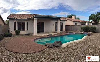 Gorgeous home located in prestigious Capriana Community. Entire home has been updated from brand new cabinetry in kitchen and bathrooms to new tile flooring in entire home. New kitchen stainless appliances. Full size washer and dryer in separate washroom. Split floorplan. Master bedroom has access to backyard with pool front views, separate shower/tub, double sinks and large walk in closet. Private backyard with covered patio. Lawn and pool service included.