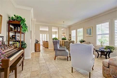 Experience this great opportunity to LIVE in South Orange County's PREMIERE Resort Style 24-Hr Guard Gated 55+ Community - PALMIA. Stunningly GORGEOUS, this floor plan is RARELY on the market with 1756 sq. ft. of interior space in this single story home. A True Diamond, this former model is designer perfect with many amazing upgrades. Offering one of the best View locations in the community, this residence is LIGHT & BRIGHT with high ceilings, custom plantation shutters and beautiful tumbled marble floors. Featuring an exquisite Formal Living Room and Dining Rooms. A LARGE Kitchen with gorgeous wood cabinets, stainless steel GE profile appliances and granite counters with an eat-in style breakfast nook. Kitchen opens to the spacious Family area creating the "Great Room Experience" with beautiful finishes including a custom entertainment built-in niche, book case and romantic fireplace. Amazing Master Suite with walk-in closet, and generous master bathroom. Family room and Master Suite look out onto the low maintenance rear yard and outward to expansive and private views. Secondary bedroom is generous in size and has customized built in desk and shelves. Convenient interior laundry room and a direct access 2 car garage with plenty of storage cabinets and space. The upgrades in this home go on and on... Amenities of Palmia are endless - Enjoy an 18 hole putting green, state of the art work out facility, Olympic size pool and spa, tennis, shuffle board, bocce and much more. An Abundance of Planned social activities, classes and outings await you. Enjoy membership at Lake Mission Viejo too.
