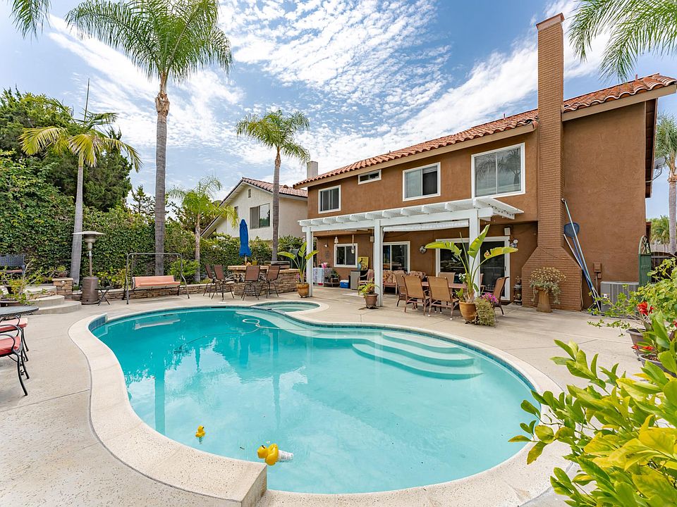 Beautiful Huge Forest Creek home located at the very end of the cul de sac featuring double door entry, large living room with vaulted ceilings, formal dining room, master bedroom features a walk in closet and tub, kitchen with granite counters and SS appliances overlooking the large family room with brick fireplace and walk behind wet bar and sliding doors leading to rear yard. Lots of possibilities with this 5 bedroom(2 Master bedrooms) 3.5 bathroom home with a formal dining room can be closed off to make a great office. The fifth master bedroom is additional with permit. Easy maintenance with ceramic tile and wood flooring thru out. The resort like rear prime yard features custom stone work, built-in BBQ, rock fireplace, waterfall and awesome salt water heated pool and spa. Great Cul De Sac location close to shopping, all schools, freeway, toll road & Irvine Spectrum. Low Taxes, NO Mello-Roos Tax and Low HOA dues which include Membership in the Resort Style Lake Forest Sun & Sail Club. Amenities include: Community Club House, Lake Access, Pools, a Gym, Tennis Courts & More. Owner Pays Gardener and pool. Renter pays all utilities