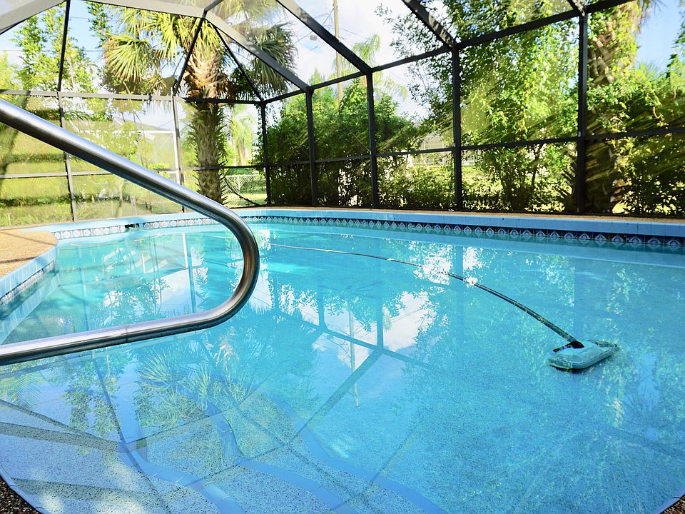 UPDATED POOL HOME WITH SOUTHERN EXPOSURE! This is the best priced pool home on a corner lot in a highly desired neighborhood. NO DEED RESTRICTIONS AND NO FLOOD ZONE. This home is beautiful, with a unique layout and is also move in ready. Once you step inside your greeted with an open layout, lots of natural lighting, a private pool view and a gorgeous kitchen. Kitchen is perfect for entertaining, has all stainless steel appliances, lots of cabinetry, granite countertops, and a greenhouse window. No carpet anywhere! Only nice tile and laminate flooring! Both bedrooms are oversized. Pool area has a large covered area big enough for both a patio table and a HOT TUB. Enjoy the hot tub in the winter or the oversized in ground pool over the summer! The southern exposure allows lots of sunlight on your pool throughout the whole day! Great privacy! New ceiling fans throughout. New Water heater. Lots of updates! LOCATED next to all entertainment, shopping, beaches, dining and grocery. Only 4 miles away from Charlotte County BEACH and BOAT RAMP. Call for your showing today.