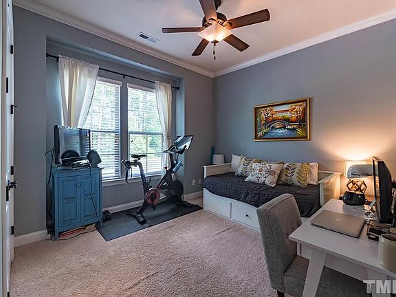 Exceptional West Cary Gem! This 4 bed/3 full bath/2 car garage has all the extras! Grand entrance with 10 ft ceilings, hardwoods, molding and trim with sep. dining room. Exquisite gourmet kitchen with gas cooktop, oversized granite island, SS appliances and separate dining. Spacious master with WIC, ensuite with double vanities, tiled shower and sep. soaking tub. Two additional great sized rooms upstairs and a bonus loft. Entertain on covered porch or by the gas firepit. Amberly is full of ammenities!