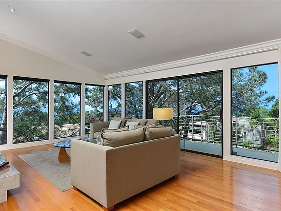 Designed to capture ocean views from all the main living areas, this bright and airy 4+ bedroom home is peacefully tucked away on a Torrey Pine lined street in desirable Del Mar. The huge ocean view deck lends itself to indoor/outdoor California coastal living and entertaining. Incorporating voluminous ceilings, generous bedrooms, hardwood floors, 2 fireplaces, custom wine storage, and a 3-car garage, this home offers a casually elegant lifestyle close to beaches and everything Del Mar has to offer.