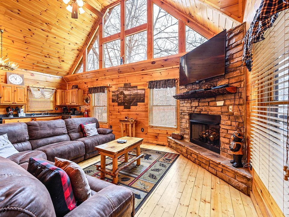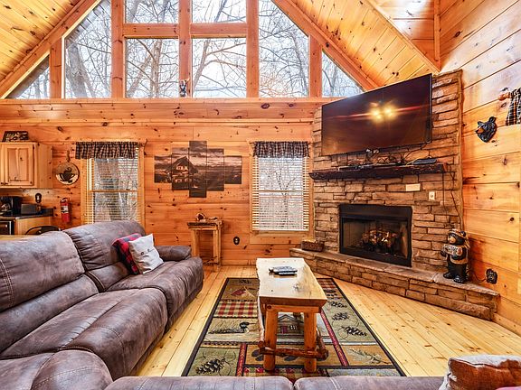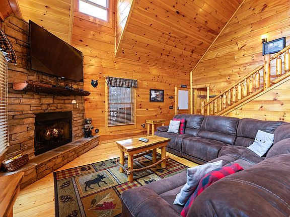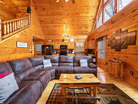 SO MANY UPGRADES in this spacious 2BR cabin with huge game/media room AND extra sleeping! Owners use it frequently as a second home and keep it in immaculate condition. Perfect location between Pigeon Forge/Gatlinburg, lots of flat parking, wrap-around game room/media room downstairs with additional sleeping (currently sleeps 9!). Potential for a view with some tree trimming. Upgrades include expanded deck area & new deck railing (2019), new 6/7 person hot tub (2019), black stainless appliances (2020), main/lower floors refinished (2018), lots of new furniture, and more! See private remarks for video walkthrough.