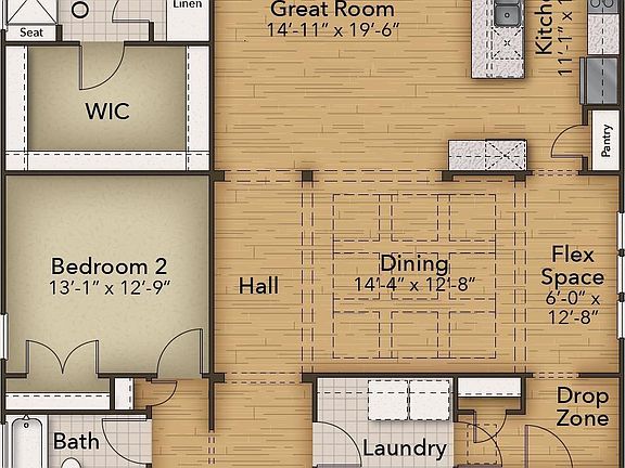 Stroll into the Boardwalk with nearly 2,815 heated square feet of first-floor coastal-inspired features. Upon entering from a large covered front porch, discover a foyer with an optional tray ceiling leading to a spacious drop zone area. Two bedrooms with large closets and a full bath are located on the left with an open dining area just ahead. Choose to add an intricate coffer ceiling across from optional built-in cabinets or beautiful barn doors. Create an intimate great room area with a tray ceiling or gas fireplace. A large, gourmet island in the kitchen offers additional seating and a surplus of counter space for large dinner parties or cooking large meals. Enjoy smaller meals with an extended breakfast area looking out onto the beautiful view of your backyard. From the great room, breeze through sliding glass doors onto a large covered porch with an optional outdoor fireplace. The Boardwalk’s master suite offers an enormous walk-in closet accompanied by a beautiful master bath with multiple options for a deluxe seated shower or deep soaking tub. An optional second floorplan adds a bedroom, full bath, walk-in closet, and linen closet alongside a spacious loft area. Use this space as a large guest suite, media room, storage, or recreational room. With options for personalizing this model to fit your every need, the Boardwalk is full of possibilities. Make the Boardwalk the model you call “home” today!