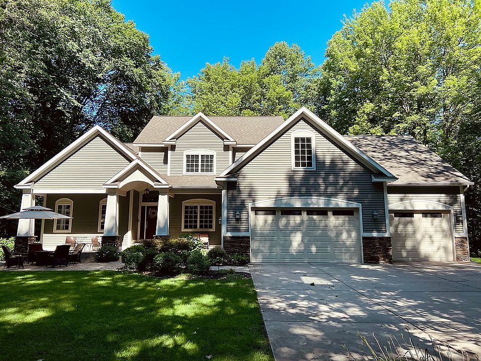 Welcome to your new home! This well-maintained, beautiful home sits back off the road in a wooded setting to ensure you privacy and peaceful relaxation. It gives you maximum space to live comfortably, with tons of storage that includes an extra deep third stall garage for all your recreational toys. The main floor showcases an open kitchen and living area with 18ft. ceilings and expansive windows to view the scenery around you. A gas fireplace keeps the living room cozy. The kitchen has a center island and an informal dining area. The main floor master bedroom suite includes a large bathroom with jetted tub and walk-in shower, and extra large walk-in closet. A spacious laundry room, separate mud room, 1/2 bath and an office/den makes this main floor an easy place to live. The open staircase takes you to two ample size bedrooms and a full bath with double vanities. The finished bonus room can be used as an extra bedroom, exercise room, or whatever you choose to make this truly an all-purpose area. The finished basement is a great place to entertain and includes even more storage with shelves. The well landscaped yard will provide you much enjoyment.