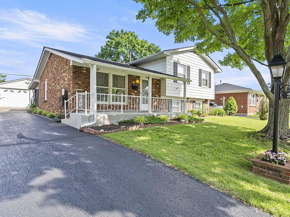 BACK ON MARKET AT NO FAULT OF THE HOME! BUYER FINACING FELL THRU! Treasured family home since 1976. A yard worthy of bragging rights, grass so lush, feels like plush carpet under foot. NEW Electrical Fuse Box/ some new wiring & Main service, PLUS Several NEW Plumbing features! It is rumored the original neighborhood builder designed this home for his own family and the added charms show. Original hardwood floors throughout the open first level. Featuring a large living room, oversized windows, dining area with unique chandelier, kitchen with white appliances, cherry stained cabinetry. Upstairs has 3 nicely sized bedrooms, one full oversized bath, plenty of closets. Downstairs features a large carpeted den, brick fireplace with mantle (gas Logs), bar with vintage lighting, Half bath housing the utilities, and additional spacious storage area. The basement/ walkout access. The sunroom measures 234sqf, a dream oasis for watching the bird bath. The garage is a car and a half with workbench. Bonus storage shed on back. Estate sale, SELLING AS-IS, inspections welcome. Seller has not lived in home for many years