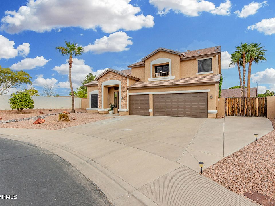WOW! Come See This Amazing Opportunity in North Mesa! This property sits at the end of a dead-end street on a cul de sac lot of approximately 1/4 acres! Enjoy privacy and an expansive driveway with a 3 car garage, plus additional concrete to a side RV Gate for added parking! This is the perfect family home that you won't want to miss! As you pull up, you will see the new paint and trim on the home that makes this home pop! Step inside to soaring vaulted ceilings and new designer carpet and paint throughout! Enjoy the formal living and dining area, plus a large great room with fireplace to entertain family and friends! The kitchen is spectacular with Brand New Quartz Countertops including new undermount sink and designer faucet, refinished cabinetry and new gold cabinet pulls. The island is massive and is complimented by 2 new pendent lights plus has an extended bar for 2 bar stools if desired. Enjoy the new high-end stylish slide in range and new microwave, plus large pantry as well that finishes off this kitchen nicely! The downstairs also has a very large bedroom and bath right near the bedroom that makes for a great guest area, multi generation living, or can be a spectacular office or bonus / game room. Head upstairs to a spacious loft for kids to enjoy that provides a perfect separate living space for kids! Continue into the primary suite through French doors that has plenty of room for a king-sized bed and room for a sitting area. The on-suite features a massive walk-in closet plus a separate linen closet, as well as his and her sinks and a separate garden tub and walk-in shower. 2 additional bedrooms upstairs are also extra-large and have nice sized closets, and they share an additional full bath right outside their bedroom doors. As you step out back into the backyard, you will be greeted by a spacious covered patio, added concrete with firepit area, plus fully fenced pool with water feature for all the family to enjoy! Walk around the side of the home to see the spacious parking behind the RV Gate and check out the updated A/C in 2020! This 4-bedroom, plus loft, 3-bath, pool, RV Gate and 3-car garage home on a dead-end street and private cul de sac lot is a must see for any family that truly wants it all in one property! Come see this home before it is gone!