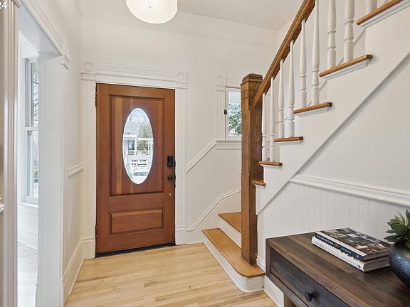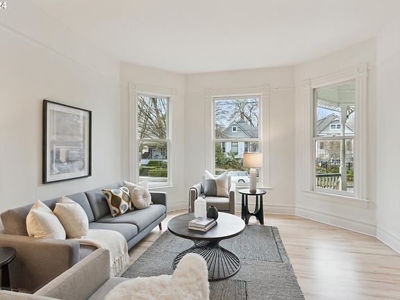 *Offers due Monday,3/4 at 6:00 * PM Elegant 1908 Foursquare located in the popular and beloved Irvington neighborhood. Just blocks to shopping and parks. Beautiful full front porch. Features newly refinished inlaid maple hardwood flooring on the main and fir flooring on the upper level, fresh interior paint. Period lighting and original details throughout. The main level includes a formal living room with fireplace and a spacious formal dining room. The updated kitchen with nook features an eating island, custom built cabinetry and pantry, stainless steel appliances and tons of storage space. The open concept floor plan encompasses the great room, nook, full bathroom, bonus room and access to the back porch and yard offering a more relaxed and informal living space. Convenient main floor laundry room. The upper level includes three generous bedrooms, a bonus office/flex space and full bathroom. The finished lower level with high ceilings and separate exterior access door offers additional living opportunities. The private fenced back yard is ideal for outdoor gatherings and get togethers. Long dedicated driveway and carport for plenty of off street parking. *New complete tear off roof in 2023, Central air conditioning. [Home Energy Score = 1. HES Report at https://rpt.greenbuildingregistry.com/hes/OR10225618]