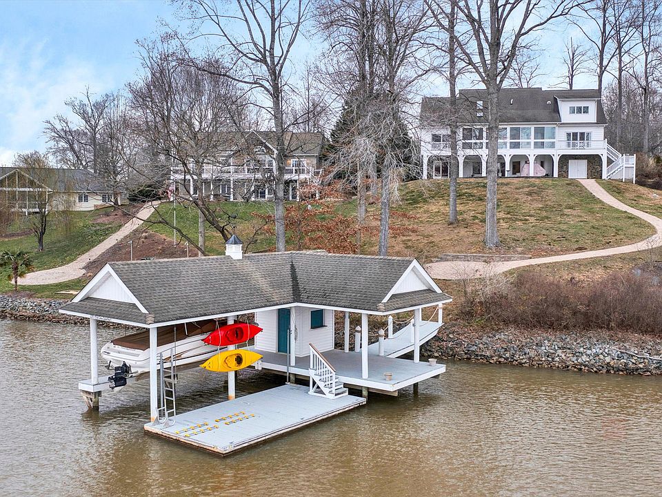 The one you've been waiting for! Immaculate waterfront home at SML. No HOA. Custom built with precision and attention to detail. Quartz & granite countertops, hardwood floors, & expansive all season room for you to enjoy magnificent sunsets over the wide deep water cove. The 2505 sq ft main level living space includes 2 en suite bedrooms with doors to the deck or sunroom looking out to the lake, great room with vaulted ceilings, & stone gas fireplace, a den/study, formal dining room, laundry, 1/2 bath. The Incredible kitchen has gas Viking cooktop, double wall ovens ,and a breakfast nook. The upper level has a BR/bonus room with full bath. Finished lower level contains a spacious recreation area which could also be a family room with sleeping area, a full kitchen & private theater room. A covered stamped concrete patio leads to a gentle paver pathway to the single covered slip dock with storage bldg and floater. A 3-1/2 car garage gives plenty of room for your vehicles and lake toys!