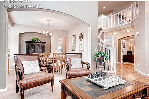 Vista Ridge home that backs to the Colorado National Golf Club golf course; open kitchen includes granite countertops, SS appliances, center island & upgraded tile backsplash; maple cabinetry & vanities; main level study with glass panel doors and an upper level loft; master bedroom includes a 5p bathroom and master sitting room; sunken family room and formal living & dining rooms; central air sprinkler system; trex deck; and custom built-in cabinetry & epoxy flooring in the finished garage.