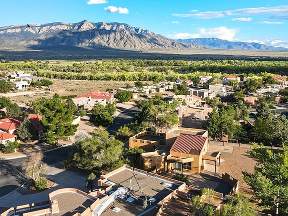 Beautiful custom Sierra home in the highly sought after Rivers Edge 2 neighborhood! Close to bosque trails & river access! This stunning 3-bedroom, 2-bath home offers 1,996 sq. ft. of Southwestern charm, situated on a massive .42-acre lot with easy lot access. Featuring authentic details throughout, including beam & corbel ceilings, vigas, and a welcoming courtyard entrance.Enjoy breathtaking views of the Sandia Mountains from the large remodeled deck, perfect for relaxing or entertaining. The oversized property also includes side RV access w/ RV plug-ins, making it ideal for travelers or outdoor enthusiasts. Got Space?? This property has it! This quiet home combines timeless adobe style & modern touches, creating a warm and inviting space both inside and out. 5K credit offered!!