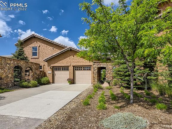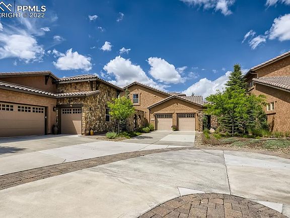Amazing luxury home with fantastic Pikes Peak (and pond) views! Come see this 5800 sq foot stunner in the heart of Sonoma in Flying Horse! One of the few that has privacy on 2 sides yet the HOA covers everything, truly "lock and leave". Home features high end custom finishes throughout, custom shutters/blinds, speakers throughout, large main level office with built in double desk and built-in book cases, solid core Alder doors and shelving throughout, loaded kitchen with Cherry cabinets and gourmet SS appliances, crown molding with rope lighting, full bathrooms for each of the 5 bedrooms, including an entire mother-in-law suite in the basement steps from the second kitchen (pantry off basement kitchen has plumbing, electric and extra insulation, making it easily convertible to a wine storage room!), amazing views from the extended outdoor patio living spaces (can be covered by a push of the button on the large retractable awning) with gas fireplace, basement has a 2nd full kitchen and large rec area. The upper half-story has 2 large suites and central living room! Spacious 3 car finished garage, great for storage. The list goes on!