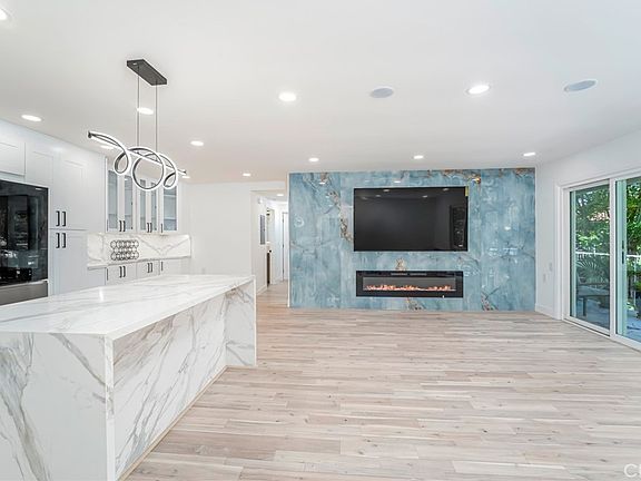 High-Tech Elegance Meets Resort Living – Luxuriously Remodeled Casa Contenta in Laguna Woods! Welcome to 2143-P Ronda Granada, a fully reimagined upper-level 2-bedroom, 2-bath Casa Contenta model in the desirable 55+ community of Laguna Woods Village. This beautifully updated home blends smart technology, designer finishes, and peaceful views of mature trees and mountains. The custom Masonite entry door with leaded glass insert, invisible screen, Wi-Fi smart lock, and video doorbell makes an unforgettable first impression. Inside, you'll find real hardwood flooring, smooth ceilings, recessed LED lighting, and Bluetooth ceiling speakers throughout. The living room features a blue and gold vein marble accent wall, an 80" mounted TV, and a stunning 6-foot electric fireplace with heat and color-changing flame effects. Dual-pane sliding glass doors lead to a tiled balcony, surrounded by potted plants, a cozy fire pit, and serene courtyard and mountain views. The remodeled kitchen showcases a quartz waterfall island, soft-close cabinetry, under-cabinet lighting, and a full suite of premium appliances including a French door refrigerator with a see-through panel, a convection and air-fryer oven with a glass cooktop, a built-in microwave, and a ceramic farmhouse sink with a pro faucet and reverse osmosis system. A full wall of cabinetry in the adjacent dining area offers excellent storage and entertaining space. The home has been fully rewired with a new electric panel and PEX plumbing throughout. The guest bath offers quartz flooring, a custom vanity, LED-lit mirror, and a quartz shower with barn-door glass enclosure, rain shower, handheld wand, and grab bars. The guest bedroom has its own wall-mounted heater, 65" TV, Bluetooth speaker, mirrored closet doors, and sliding glass access to the balcony. The primary suite includes a custom walk-in closet, 65" TV, Bluetooth speaker, and ensuite bath with marbled quartz flooring, spacious vanity with black hardware, LED mirror, and a barn-door quartz shower with built-in bench, rain head, and grab bars. A stacked Frigidaire washer/dryer is conveniently located in the hallway. As a resident of Laguna Woods Village, enjoy resort-style amenities: golf, tennis, pickleball, pools, fitness centers, clubhouses, over 250 clubs, equestrian center, art studios, and free transportation — all just minutes from Laguna Beach. Don’t miss this one-of-a-kind, tech-savvy, designer-upgraded home in one of the premier OC 55+ communities.