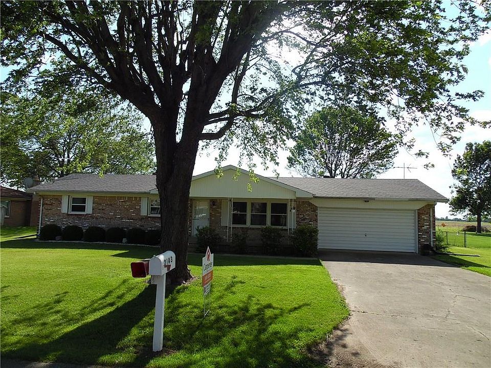 Very nice 3 bedroom, 1.5 bath brick ranch at the edge of town. Large living room, kitchen, dining area, laundry room. All appliances stay. New roof about 8 years, new septic about 8 years, new windows about 6 years. 2 car attached garage. Beautiful hardwood floors. Covered front porch. Large covered back patio great for relaxing. Huge back yard. Storage shed. Possession at closing.