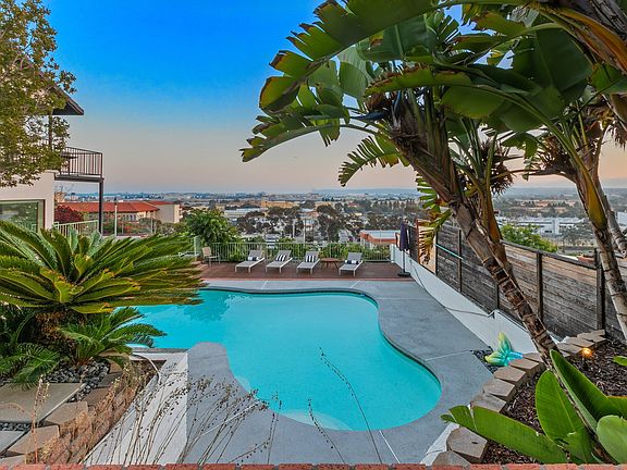 Feel at home in this stunning 4-bedroom, 4.5-bath hillside villa located in the historic Mission Hills neighborhood of San Diego. This exceptional residence boasts a wrap-around balcony with panoramic city views, a heated pool with jacuzzi, and 2,500 sq-ft of interior space with vaulted ceilings and an open floor plan. The chic modern decor and two fully stocked kitchens make this villa a perfect retreat. Designed to perfection, this villa offers generously sized interior and exterior spaces, making it an ideal setting for entertaining your closest friends and loved ones or relishing in your own personal serenity. The villa features four king-size beds, one sofa bed, and one couch. Enjoy poolside sun loungers, outdoor lounge areas, and a complimentary washer and dryer. The attached studio suite with private access is also included. The heated pool is available for an additional $100 per day. Dogs are allowed with a maximum of two dogs per stay and a fee of $100 per pet per stay. Nestled in the heart of the historic Mission Hills neighborhood, this villa ensures you're always conveniently prepared to experience San Diego. Mission Hills is a luxurious neighborhood district that exudes nostalgic charm, housing San Diego's oldest and most historic residences alongside an eclectic array of restaurants, boutiques, and parks, all while offering some of the most stunning views of San Diego. The villa is located just 3 miles from Downtown, 5 miles from Ocean Beach, and 6 miles from Pacific Beach. The villa offers a self-check-in system with keyless keypad access to the main house and optional private keyed access to the studio suite. Quiet hours are from 10pm to 8am. Report any damages before checking out to avoid penalties.