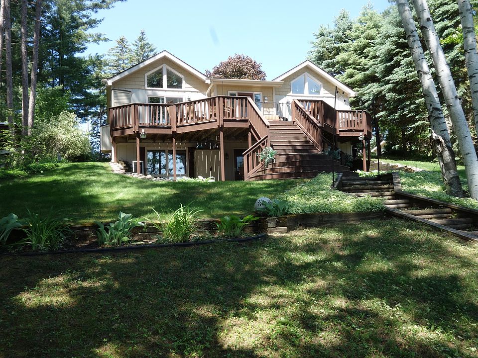 DIXON LAKE - What a rare find on a pristine all-sport lake. Beautiful lake views from the spacious open floor plan. Stunning new kitchen featuring granite counter tops, gas range with double ovens, large island & beverage center, walnut hardwood floors, & lighting. Also updated are the baths, carpet, paint, doors & trim & so much more! 4 bedrooms, including a master suite w/walk-in closet & gas fireplace, 2.5 baths & lower-level walkout. 70 ft. of private water front boasts patio area , firepit, lakeside storage and dock is included. Detached 2.5 heated garage with workshop & paved drive. Beautifully landscaped with irrigation system & large deck . This home is gorgeous & absolutely a MUST SEE! Make your appointment TODAY!