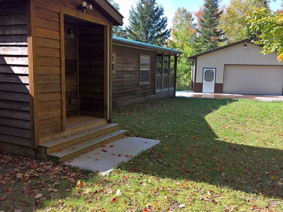 Manufactured housing & Pole building on 5 acres. All included in the price. Beautiful cedar home. Pole building brand new.$75,000 worth of remodel work done in the last 5 years, absolutely gorgeous. The 5 acres is on the Black River. 3 1/2 acres on one side of River and 1 1/2 acres on the other side of the River. Land contract terms available for details. More pics or videos. Land contract terms. Call 231-884-3388 thanks.