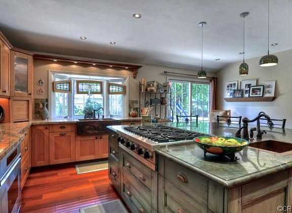 Desirable single story home sits on an extra large corner lot with convenient RV parking. As you walk into the home you are embraced by the warm family room with lovely fireplace. Bay windows over look the backyard with fruit trees. The gourmet kitchen is a chef's dream come true, no expense was spared! The extra large island is great for entertaining with a built in bar copper sink on the island and Viking gas stove top. Extra large built in refrigerator, another main copper farm house sink and two built in ovens. Outstanding wood flooring throughout the kitchen adds to the charm. Off the kitchen are sliding doors to the backyard so you can enjoy warm summer nights. This home has 3 full baths along with 3 bedrooms with new carpet. The master bedroom has a sitting area along with sliding doors that step out into your secluded back yard. There is also access to one bath from the outside for the beach lovers to rinse off. New laundry room with beautiful travertine flooring makes doing laundry a snap! Great school district and close to the beach. Come enjoy all Huntington Beach has to offer!!!!