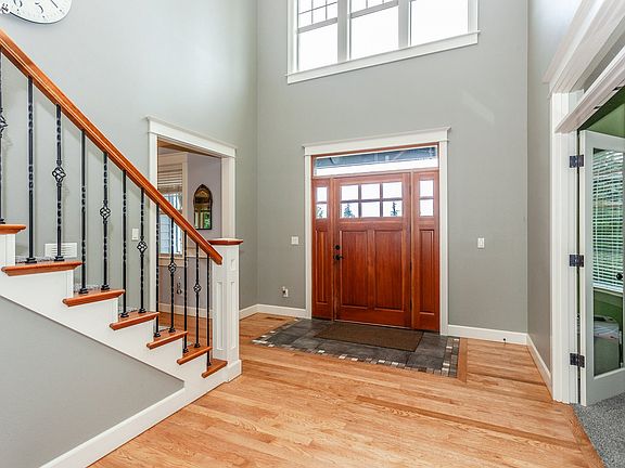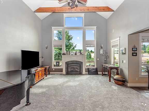 Stunning custom-built home on 3 acres! First time on the market, this gorgeous one owner country estate will amaze- 5 bedrooms + office, including a luxurious main floor primary suite and 2 additional ensuites. Primary suite features vaulted ceiling, spacious walk-in closet, tile walk-in shower and soaking tub with a private fireplace! 5 full bathrooms and one half-bath, large bonus room, and a bright, open floor plan with vaulted living room and tons of natural light. A true cook's kitchen with high-end stainless appliances, wine cooler, granite counters, large island and separate dining room - perfect for entertaining! Wonderfully functional mud room/laundry room off the kitchen, 3 car garage with 2 EV charging stations, and room for boat or RV parking. Super efficient home with 2 gas furnaces and 2 AC units, one for upstairs and one for the main floor. Manicured grounds around the home with inground sprinkler system, koi pond, water feature and even a waterfall! Full sport court, above ground pool with deck, and covered patio for summer BBQs! Separate fenced pasture with barn and friendly goats could be used for horses, or other animals. Tucked away on a quiet street in Beavercreek, yet convenient to town, 205, Oregon City and only 23 miles to PDX airport. Too many great things to list, this is a must see!