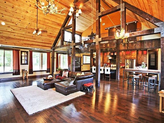 Breathtakingly, Unique & Totally Custom Rustic/Modern w/ Lodge Style & Feel. Your oasis awaits on beautiful 35acres, pond & shop, Hilltop views, only minutes to roaring river state park. 3,616sf of Handcrafted & Custom designed features throughout, as you enter the Details & Finishes will Impress, Hardwood floors, Soaring 26ft ceiling in Living room & 9ft though out downstairs & Petra stone wood burning fireplace inside & out Custom Knotty Alder & Hickory Cabinetry w accent lighting system, Granite Tops throughout. Custom Forged Iron stairs & balcony railing, large game/family w wet bar & wine fridge. Rustic Elegance waits in the Master wing, Charming Soaker, Massive shower w 2x2ft, Rain Shower heads w LED lighting, Truly One of a Kind & Must See contact agent for features list so much mor