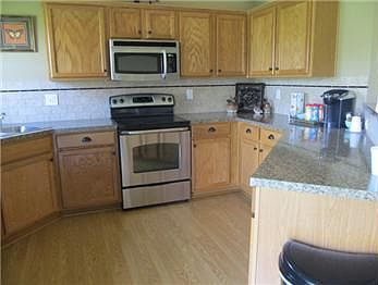Former Model Home. Never Lived in 3 bedroom ranch. Easy access to 169 hiway. Beautiful kitchen: Birch cabinets, large peninsula/breakfast bar, SS appliances. Frieze carpet, vaulted ceiling, dbl vanity, wi closet, corner lot, side entry garage, full basement stubbed for 3rd bath. 100% USDA financing available.