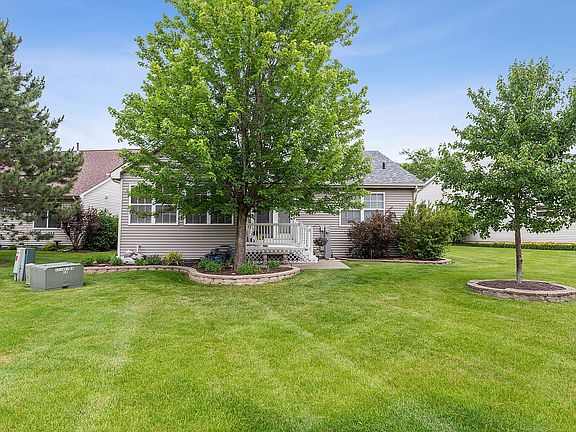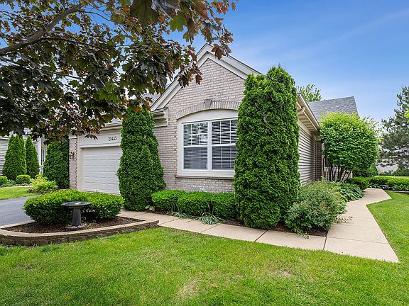 Beautiful RANCH home is nestled on a quiet, cul-de-sac lot for ultimate privacy in Carillon's 55+ Active Adult Community. Welcome inside this spacious, sunlit home with neutral decor and a well designed floor plan for easy living or entertaining. This sought after Greenbriar model in the Dover Community has an EXPANDED FAMILY ROOM, 2 primary bedroom suites and a FINISHED BASEMENT. Impressive 10' ceilings in the spacious living room and formal dining rooms. Beautiful eat-in kitchen features an abundance of oak cabinetry and great counter space. Large eating area with access to the deck overlooking the picturesque yard. Comfortable family was expanded from the original floor plan to add extra living space. TWO SPACIOUS PRIMARY BEDROOM SUITES with walk-in closets. Lovely bath with a jetted tub, seperate shower and a large vanity with double sinks. First floor den has a double door entry and newer luxury vinyl floors. The laundry room has a utility sink and cabinets for extra storage. The FINISHED BASEMENT features a large recreation area with endless possibilities, full bath and a separate office / craft room. Relax outdoors on the maintenance-free deck and small patio overlooking the picturesque lush green landscaping. MAJOR UPDATES INCLUDE: A/C (2023), furnace (2022), roof and leaf gutter guards (2021), blinds throughout (2021), water softener and sump pump (2020) and much more! Carillon is a gated, golf course community with indoor/outdoor pools, clubhouse, tennis courts, countless activities and much more. Ideal location near shopping dining and easy access to I-55 and expressways. Don't miss out on this beauty!