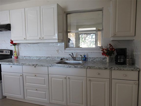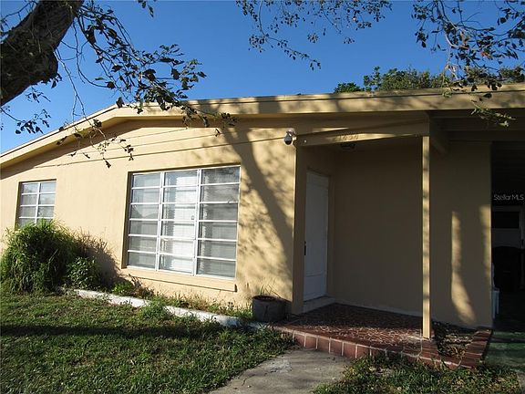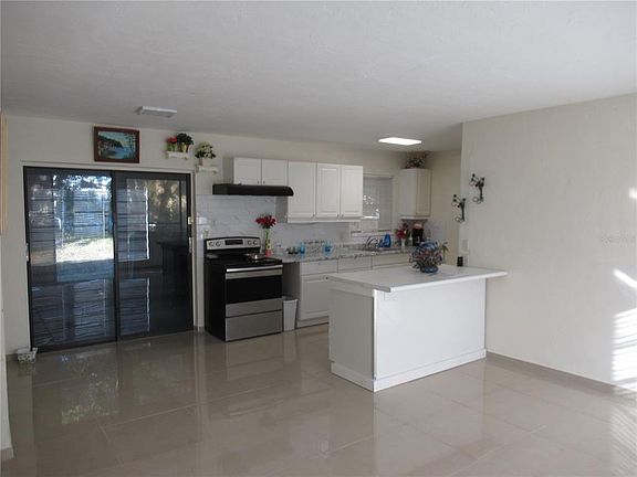 Spacious and Bright 3 bed or 2 bed with bonus room & 1bath. Recently renovated with marble tile floors throughout, kitchen cabinets & countertops, & freshly painted interior & exteror. Bath has been updated with contemporary wave design tile walls, new glass shower doors, pedestal sink, mirror & commode. Per the seller, Electrical panel is newer as well as the hotwater heater, New plumbing and New AC and duct work.. The Huge screened lanai is great for entertaining and overlooks a spacious fenced lanai with shade tree.