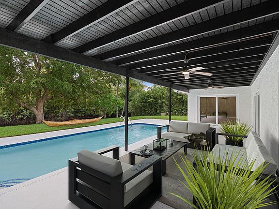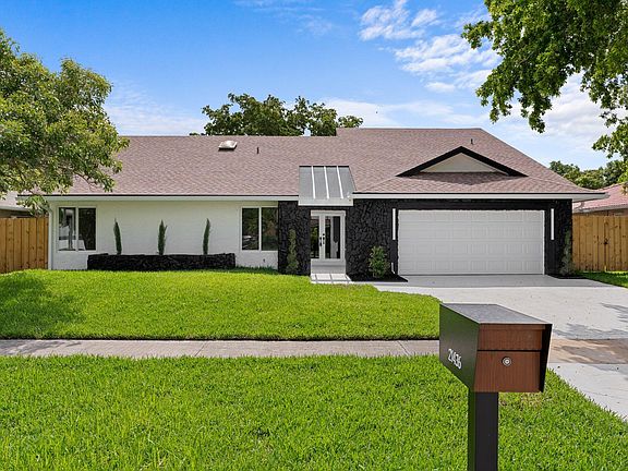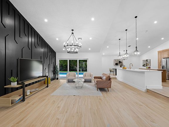 Step into elevated living with this stunning designer home in the sought-after Loggers Run community of West Boca Raton. This beautifully remodeled residence features vaulted ceilings, wide plank porcelain tile, a custom pine accent wall, and an abundance of natural light that creates a warm and inviting atmosphere.Enjoy peace of mind with FULL impact windows and sliders, a newer roof (2018), brand-new AC (2025), new water heater (2025), and a resurfaced pool (2025)--perfect for relaxing or entertaining. The show-stopping kitchen boasts custom cabinetry, quartz countertops, an Italian stone backsplash, and solid wood doors throughout the home.Both bathrooms have been fully renovated with elegant, designer finishes. Step outside and experience true tranquility as you're backed up to an oversized lagoon, offering the most beautiful and serene views a rare and peaceful retreat right in your backyard.
