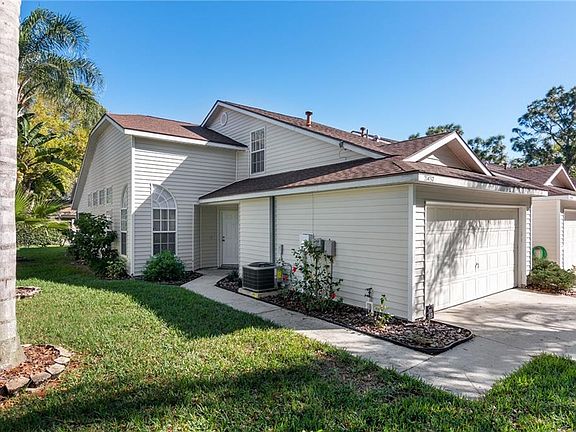 Welcome to 21437 Clubside Loop located within the town-home / villa community of Lake Heron, Lutz. This home boasts of three large bedrooms, featuring a first-floor master, and two very spacious bathrooms to suit. Home features tile flooring throughout on the first floor. Newer HVAC and upstairs carpet. Custom crafted staircase railing, custom made blinds for all of the first-floor windows, upgraded newer kitchen counter tops that also match upstairs vanity. Fleshly painted flooring in the (two car) garage area. Relax outside at home in your screened in patio area, or by the community pool that's literally less than one minute from your front door!. The home sits on a quiet street with easy access to US Hwy 54 which puts you within minutes to all the new shopping centers and restaurants in the immediate area. Act quickly, these go fast! Schedule your private showing today.