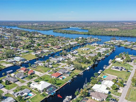 Introducing your ideal direct Gulf Access waterfront sanctuary in Southwest Florida! This stunning 2,366 square foot residence, featuring 3 bedrooms, 2.5 bathrooms, and a 3-car garage, embodies the essence of coastal living in Southwest Florida. Enjoy seamless access to the Gulf via the Caloosahatchee River, courtesy of your private dock crafted with Trex Composite material, complete with an electric lift capable of handling boats up to 14,000 lbs. Dive into luxury with a breathtaking saltwater pool featuring water features, a sun deck, and a panoramic screen enclosure, making it a rare find. The home's interior is adorned with premium upgrades including quartz countertops in the kitchen, renovated bathrooms, plush new carpeting in the bedrooms, and a brand-new A/C unit installed in 2022. Additionally, the residence is equipped with a whole-home Generac generator connected to a 250-gallon underground propane tank for added peace of mind. Experience comfort and convenience with the thoughtfully designed split floor plan, highlighted by a master bedroom featuring French doors leading to the outdoor living area, dual closets with built-in organizers, dual vanities, a luxurious soaking tub, and an expansive walk-through shower. Connected to city water and sewer, and free from HOA fees and restrictions, this property offers the ultimate waterfront oasis tailored to your desires. With no bridges or locks to navigate to reach the Gulf of Mexico, this is truly a dream come true for waterfront living. Plus, it’s a short boat ride to the waterfront Boat House Tiki Bar & Grill! Come enjoy the SWFL waterfront lifestyle to the fullest here!